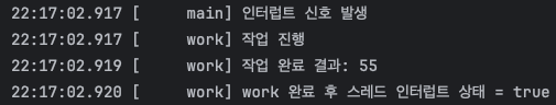 log.info("work 완료 후 스레드 인터럽트 상태 = {}", Thread.currentThread().isInterrupted());