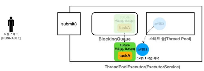 이렇게 전달받은 Future 객체를 통해 요청 스레드는 작업의 결과값을 직접 조회할 수 있는 것이다.