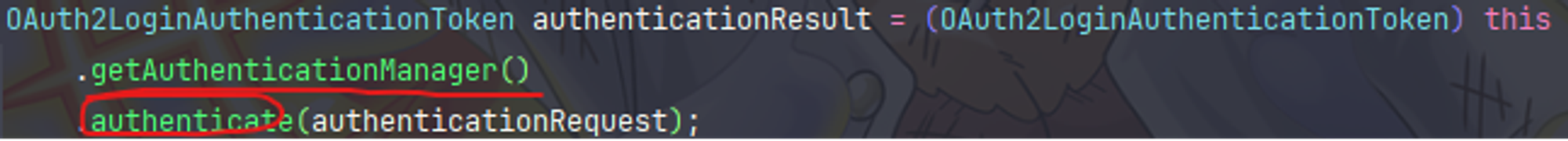 8. OAuth2LoginAuthenticationToken을 처리하는 알맞는 Provider를 찾아 authenticate() 메서드를 호출한다.